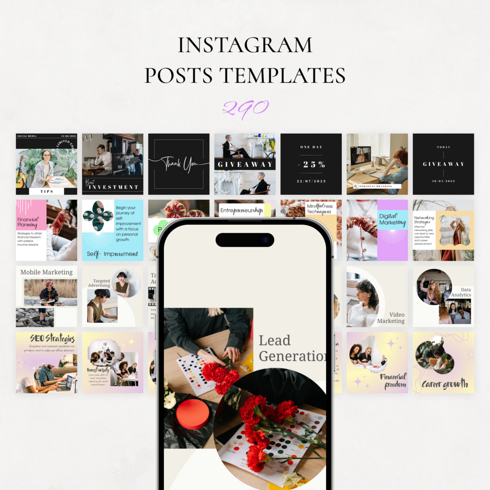 780 Instagram Template Bundle is the ultimate Insta Marketing Kit for anyone looking to elevate their social media game. With a variety of beautifully designed templates, you can easily create stunning Instagram posts, stories, and highlights that will attract more followers and increase engagement. This set includes everything you need to make your profile stand out, from Canva Packages to Realtor Branding Kits, and Blogger Templates to Coach Instagram designs. Whether you're a blogger, business owner, or influencer, this Marketing Bundle is sure to take your Instagram feed to the next level.