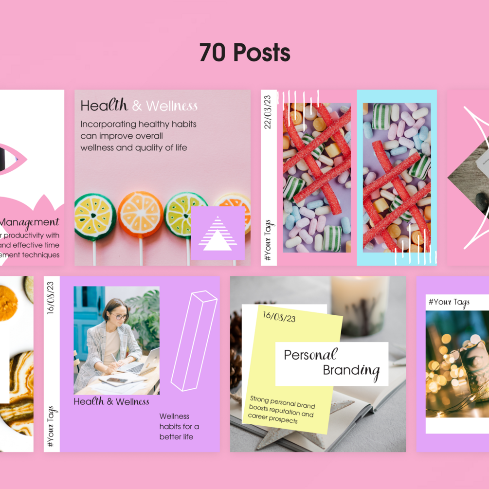 Set of 190 marketing Instagram templates designed specifically with businesses in mind, these Canva templates will help you create eye-catching and aesthetically pleasing posts and highlights that will keep your audience engaged and informed. These digital marketing templates are fully editable, allowing you to customize them to your brand's specific needs and style. Whether you're a coach or a business owner, these templates will help you take your Instagram presence to the next level.